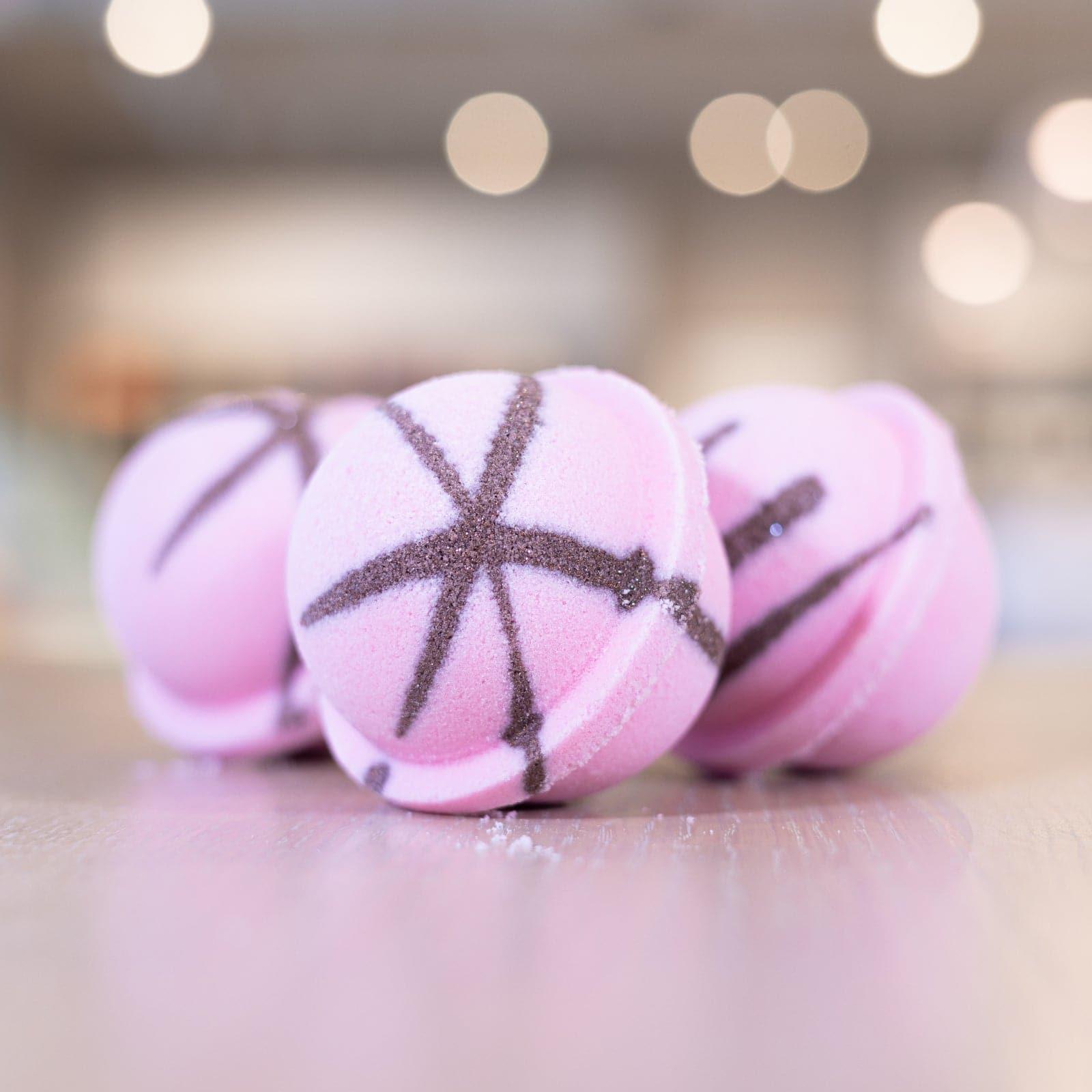 Pink Sugar Bath Bomb Handmade with hydrating cocoa butter an explosion of scent for a nourishing bath experience. Pink Sugar is an airy confection of vanilla and caramel that recalls the most delicate sweet treats like puff pastry, spun sugar, and cakes with icing flowers. Smells Like Sugarcane Cotton Candy