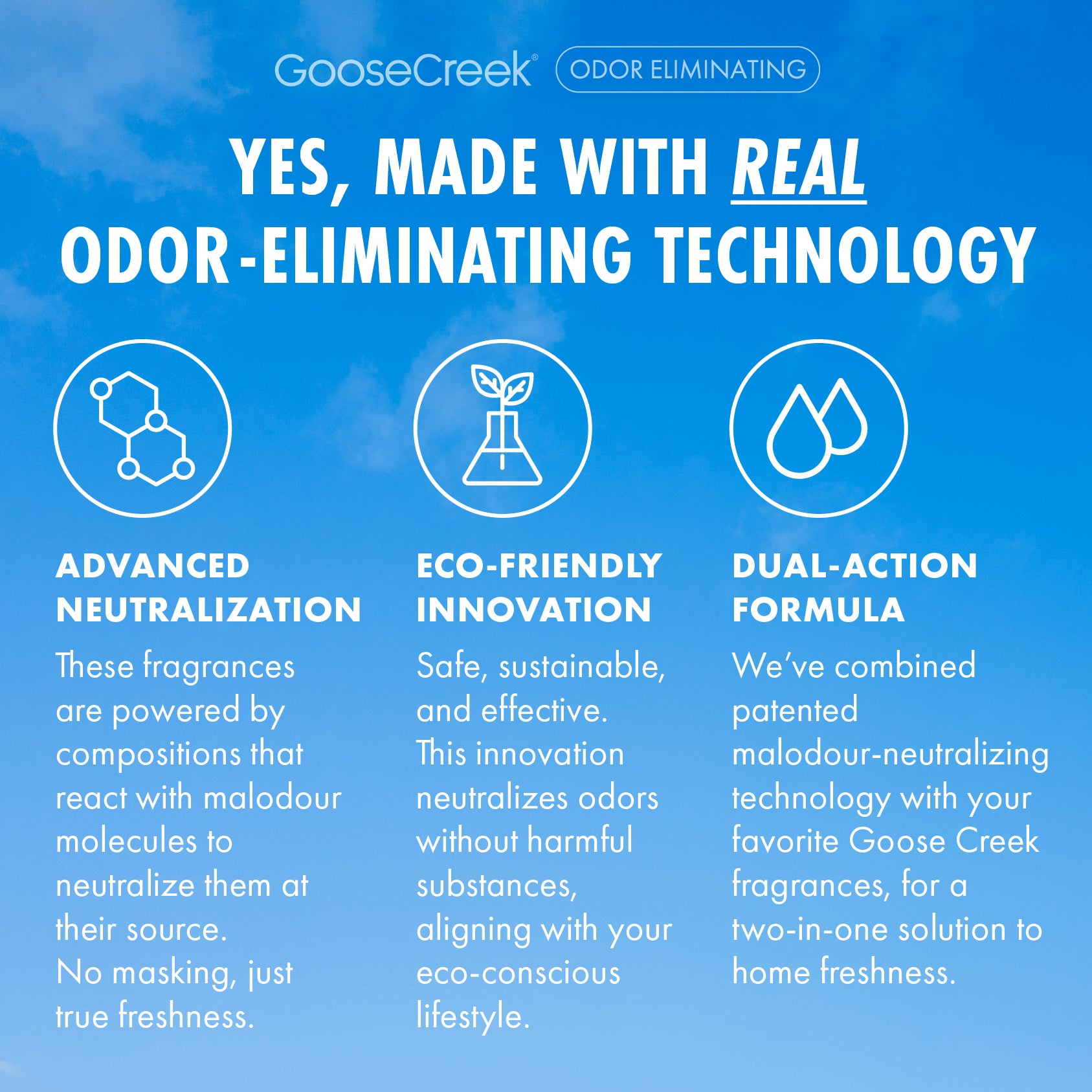 The fragrances you’ve come to know and love are not only highly scented. safe. and clean burning but now feature an exclusive odor elimination technology to tackle everyday unwanted odors invading your home. Our proprietary odor elimination technology features neutralizing malodor molecules that don’t just mask fragrances; it completely eliminates malodors ensuring your home is only filled with our authentic. artfully crafted fragrances. Scent is the first thing people notice when they walk into a home. With our odor-eliminating technology. your home will always smell amazing!